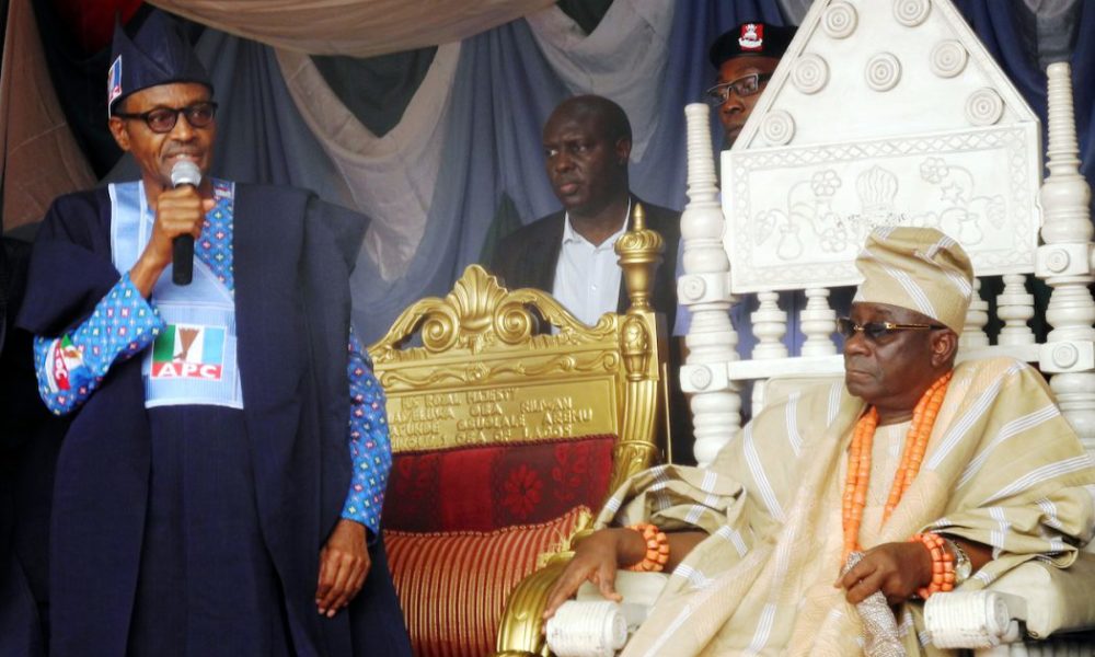 By Lukman Amusa The Oba of Lagos, Oba Riliwanu Akiolu, has assured President Muhammadu Buhari of victory on the forthcoming Presidential election. Akiolu spoke when Buhari...